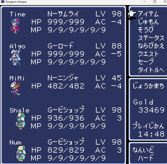 本家Wizardryと違い、まほうつかい呪文とそうりょ呪文の使用回数は共有されているので、「攻撃呪文を調子こいて使いまくってたら回復できなくなってたぜ!!!」ということが割と起こる